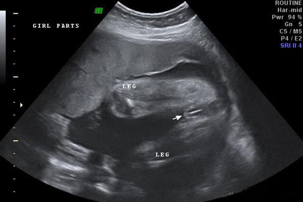大家可以看到图中女宝的生殖器结构,上面有类似于线条的一杠,这就是女宝胎儿的外生殖器结构了,也就是我们所说的大小阴唇,有的时候b超看到是一条线,大多时候是三条,有这一点,女宝就更好确认了。孕周大了之后,这个时候性别特征不仅很明显,而且非常清晰好分辨,看男女基本都是十有八九的事情;Wjs试管婴儿资讯平台_全面而体贴的中文母婴孕育网