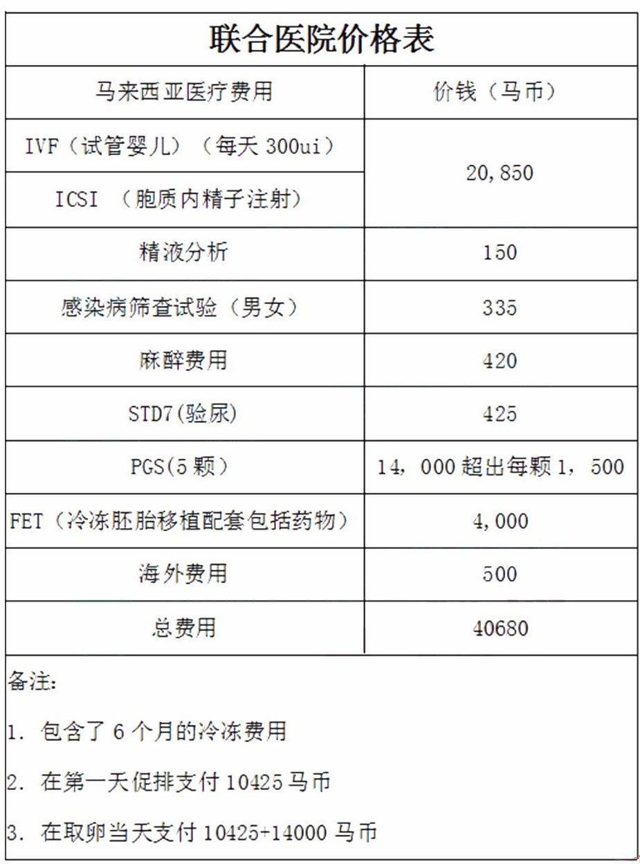 马来西亚联合生育医院价格表